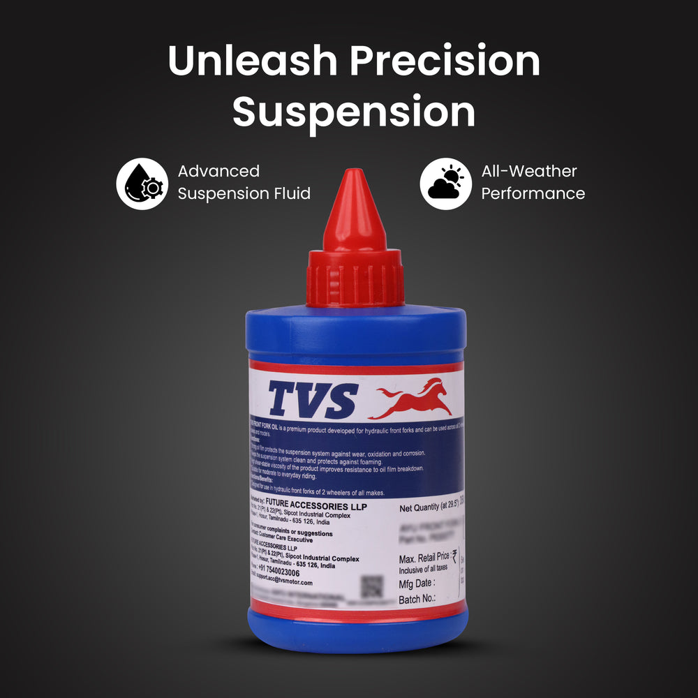- TVS Fork oil is an advanced mineral based suspension fluid designed to provide optimum damping performance in all on & off road suspensions