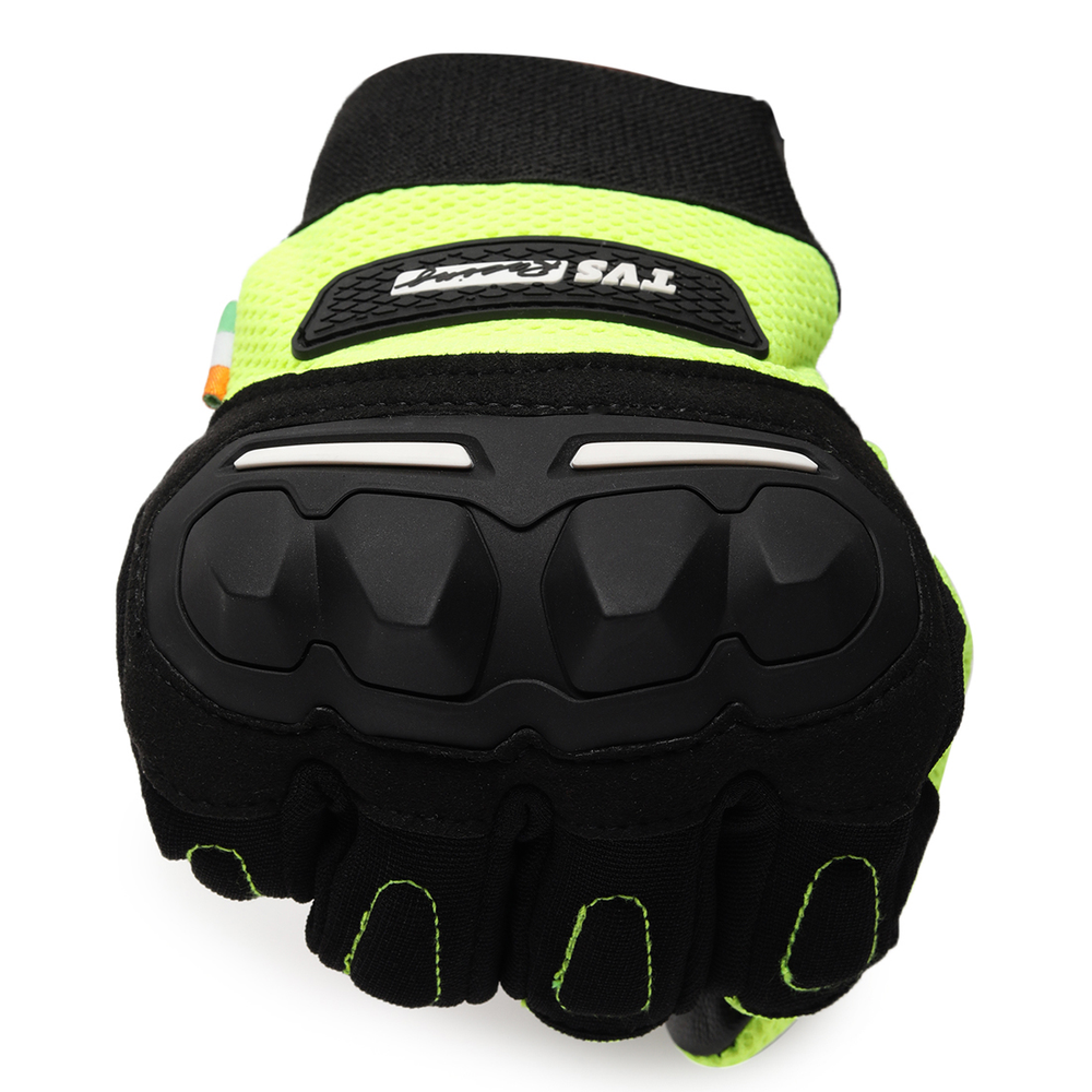 TVS Racing Xplorer Riding Gloves for Men – PVC & Carbon Protected, Touch Screen Compatible, & Visor Wiper Fingertips – Premium Bike Gloves for Riding Comfort (Neon)