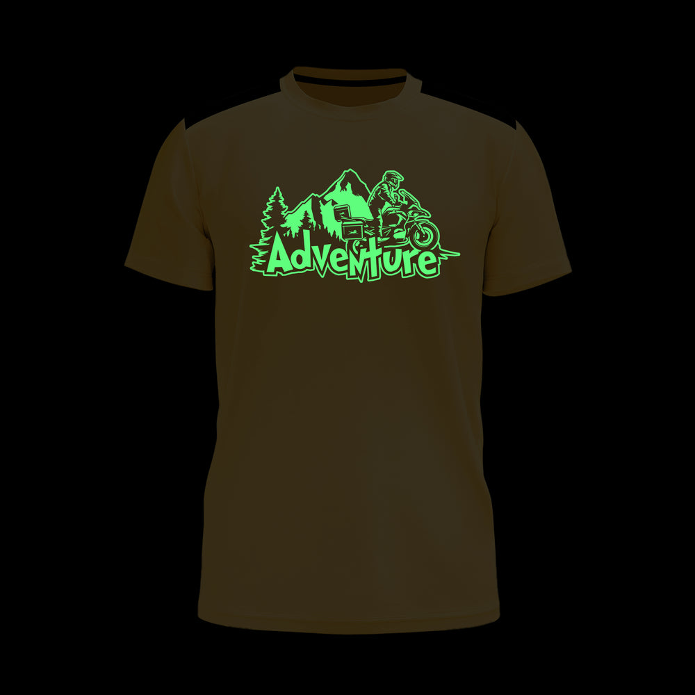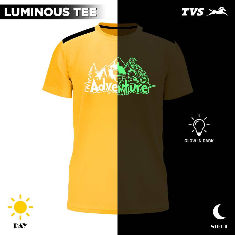 Experience adventure in style with this sleek round-neck T-shirt featuring a Glow-in-the-Dark Radium Print on the chest. Designed for riders who love to stand out at night. The t-shirt made with 100% cotton single jersey offers ultra-soft comfort, a smooth feel, and breathable fabric that keeps you cool, making it perfect for adventures.
